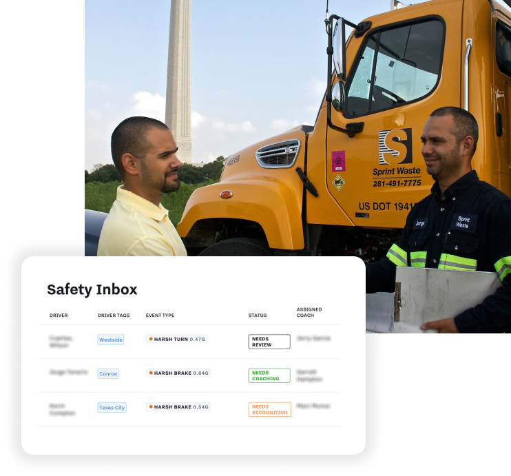 With more than 20 managers responsible for hundreds of drivers across 14 locations, accountability and consistency are key to Sprint Waste’s coaching strategy. They hold weekly (sometimes daily) safety meetings with drivers, and their entire leadership team has a safety call every Friday that Nelson leads. Now, with Samsara, they can proactively identify coachable moments and give drivers feedback using actual footage of themselves. Samsara has helped Sprint Waste increase the consistency and efficacy of 1:1 and group coaching, contributing to a 58% decrease in speeding incidents, 50% increase in miles per safety incident, and 50% decrease in average dollars per claim.