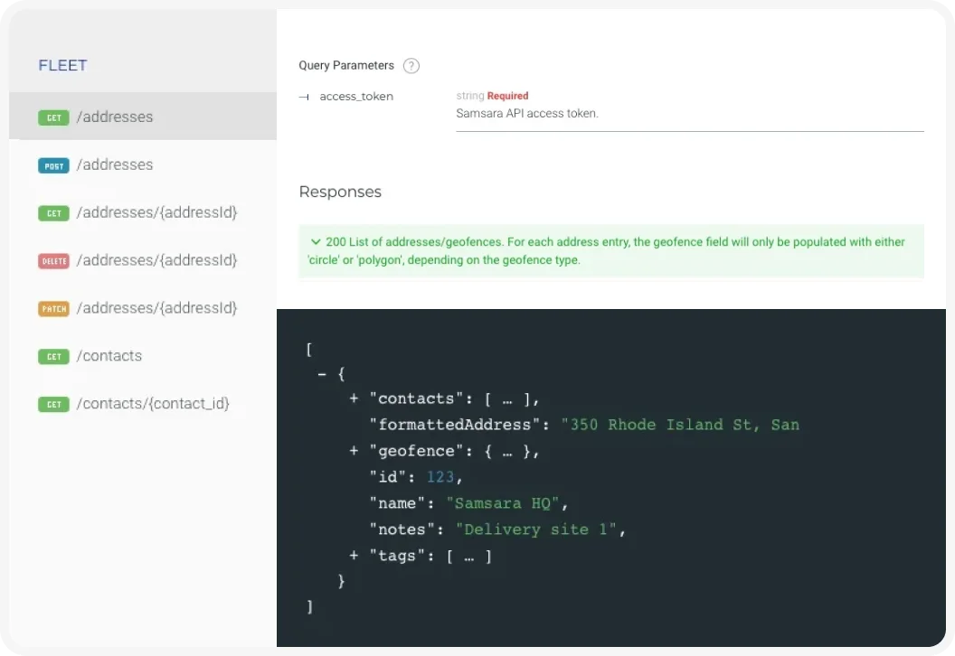 Samsara proporciona un sólido conjunto de API REST y webhooks para permitirte integrar Samsara en prácticamente cualquier plataforma.