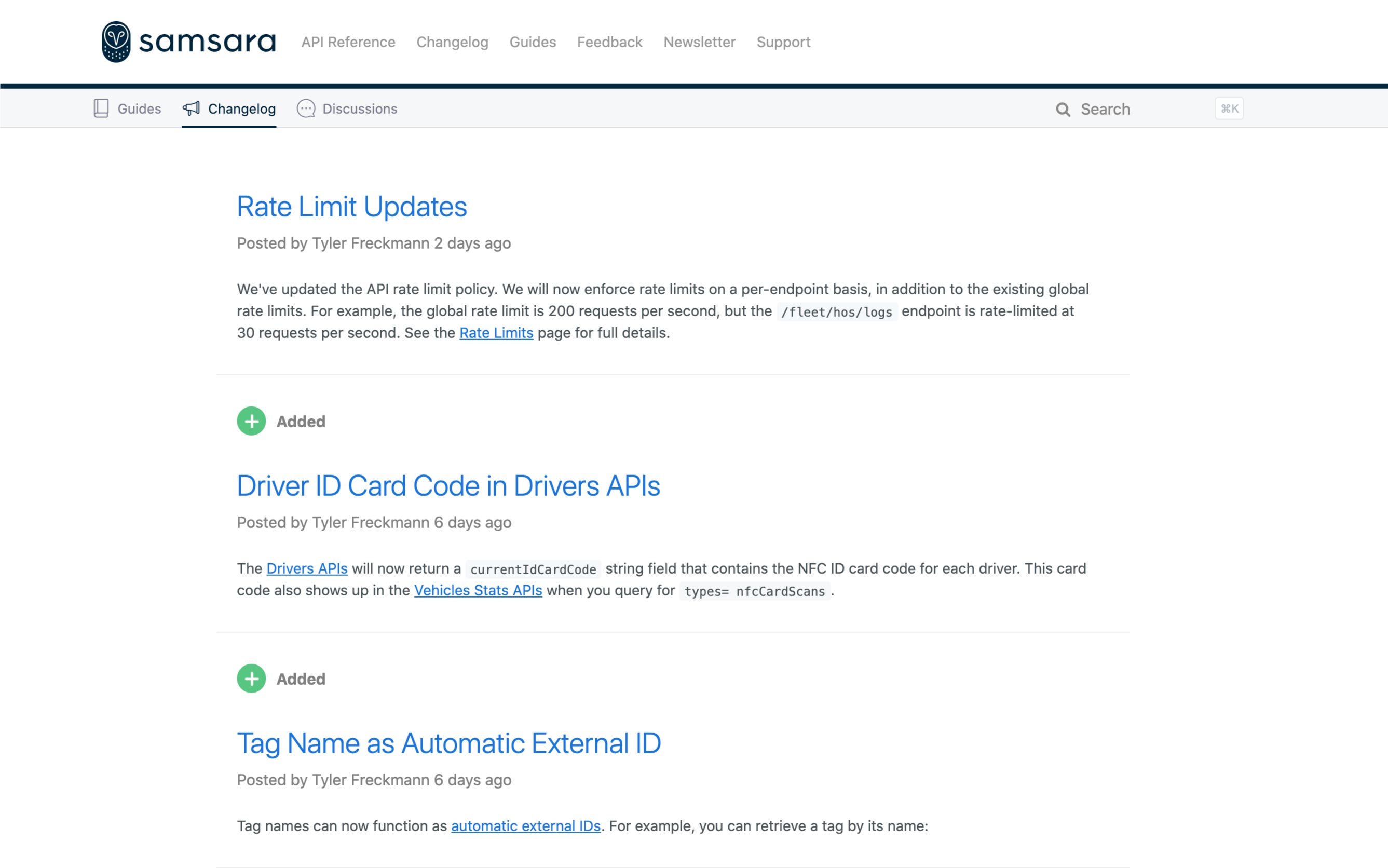 Samsara developer Changelog