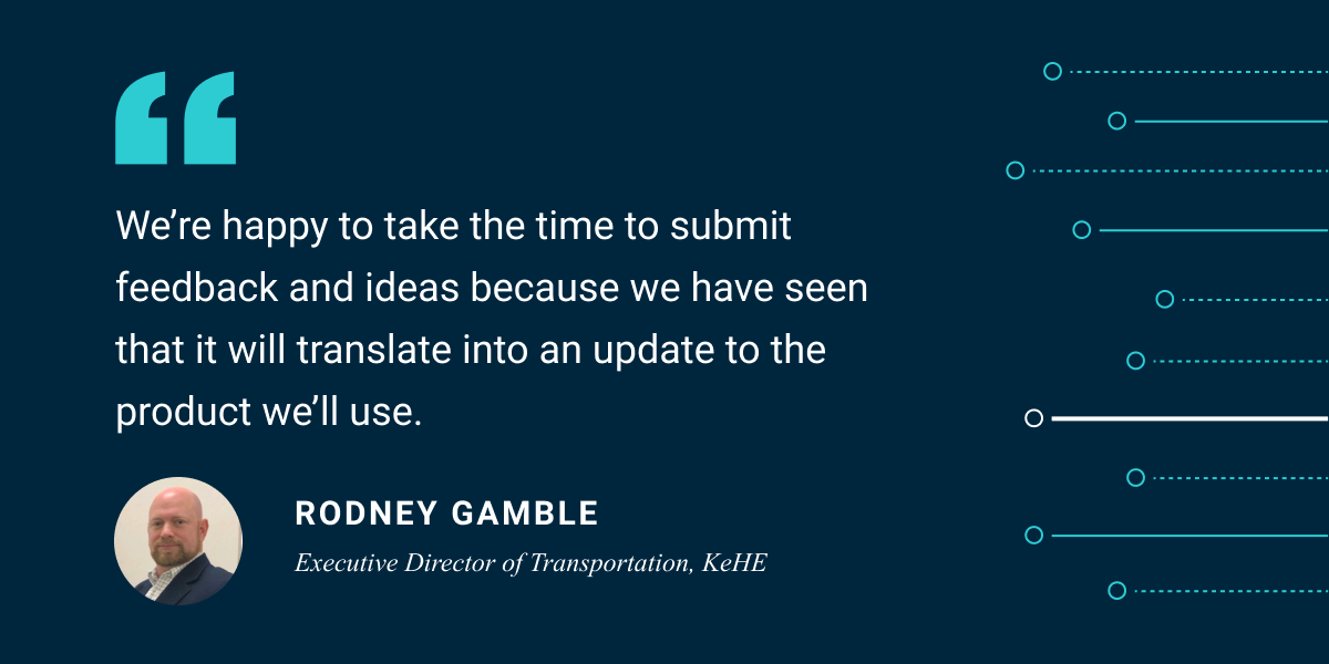 Illinois-based food and beverage distributor KeHE Distributors has found Samsara to be a true partner, not just a vendor. In their time working with Samsara, KeHE has been impressed with the level of customer service they’ve received and the speed at which new features are released. “We’re happy to take the time to submit feedback and ideas because we have seen that it will translate into an update to the product we’ll use,” said Rodney Gamble, KeHE’s Executive Director of Transportation.