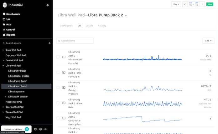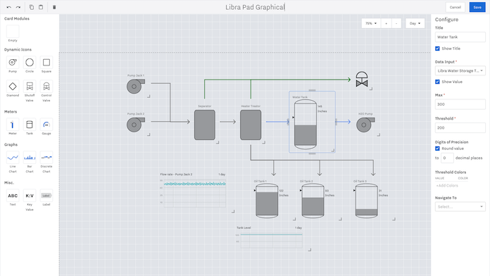 Under the dashboards tab for each asset, you and your stakeholders can now create multiple types of custom dashboards for any given asset. Executive teams can track high level production metrics using grid dashboards, while maintenance technicians can take advantage of an all-new graphical view to see a virtual representation of physical assets. Like all Samsara dashboards, the new graphical view is easy to build with drag and drop components and can be replicated across assets.