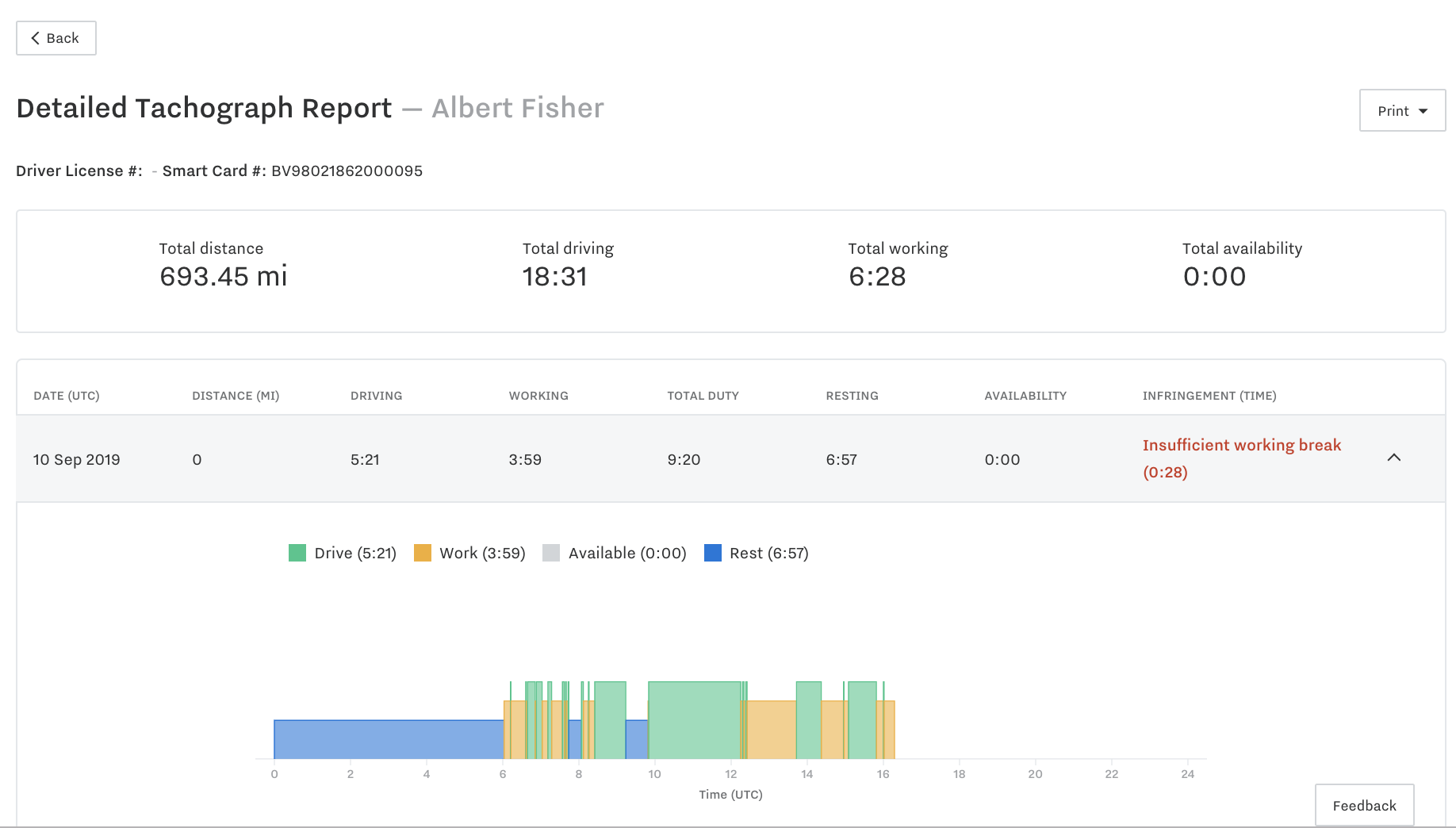 With visibility into remaining driving hours, customers can not only improve their efficiency, but also avoid costly infringements.