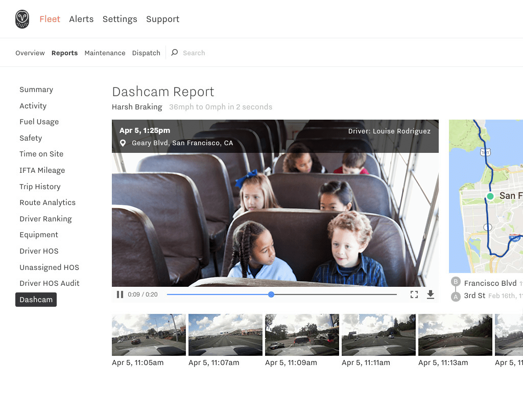 Administrators can set up alerts to be notified of certain events -- for example, if the driver speeds, or if an engine fault is detected. High-definition dash-cams can be installed to provide an added layer of visibility into what happens on the road as well as what happens inside the bus.