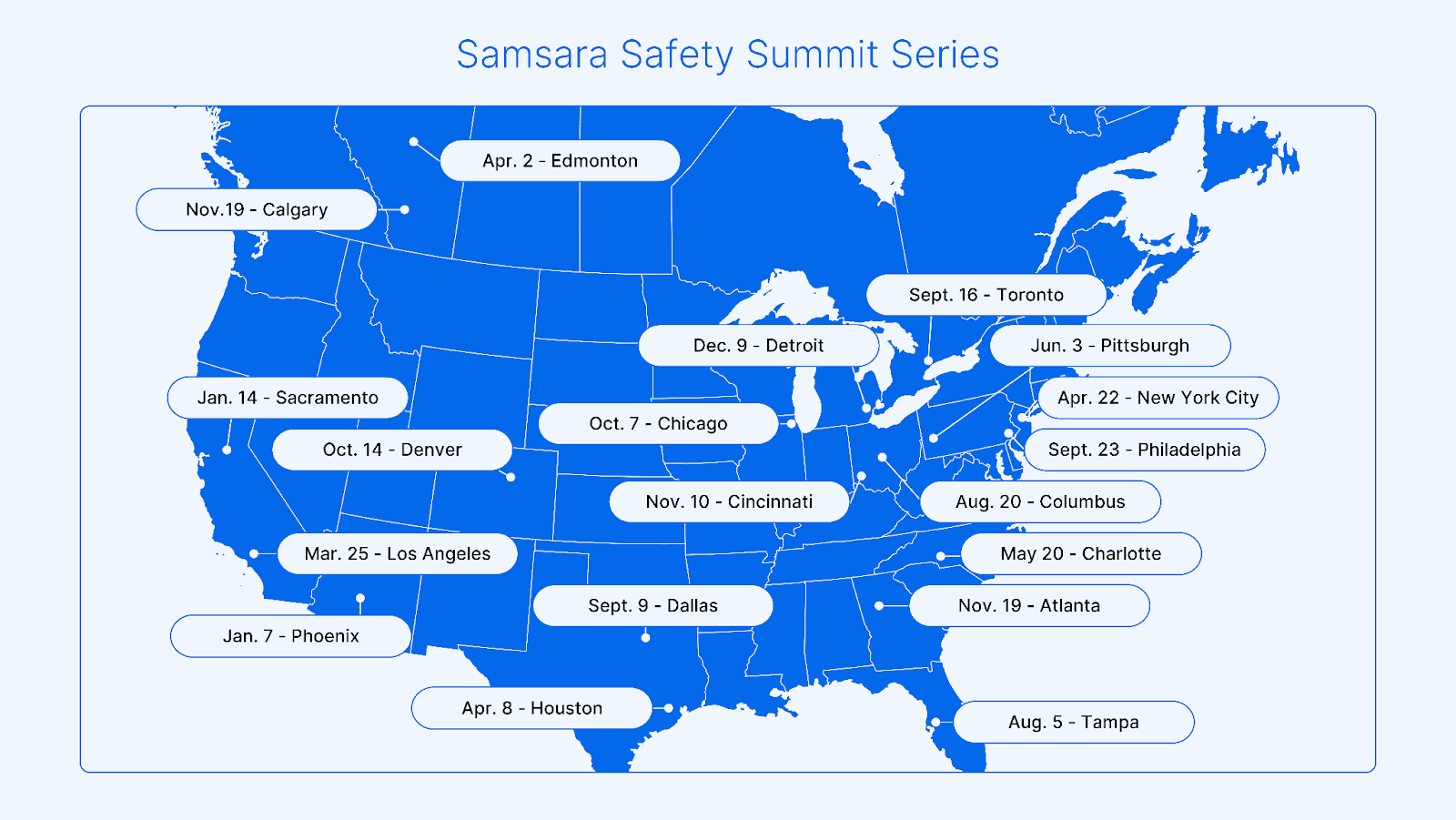 To help operations leaders confront these critical challenges, Samsara is proud to announce the return of our Safety Summit Series in 2026. This year, we are expanding our reach, hosting 19 events across the U.S. and Canada beginning this March.
