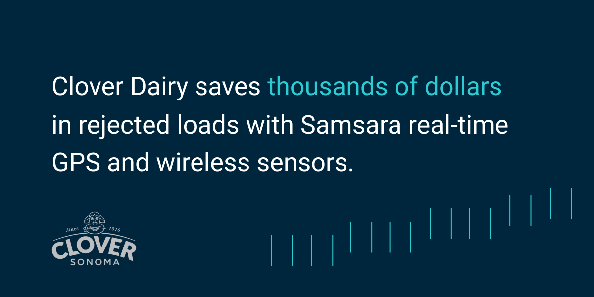 Based in Sonoma, CA, Clover Dairy would sometimes receive calls from customers complaining about late deliveries and spoiled goods. With no way to prove when deliveries arrived and were unloaded, Distribution Manager Paul Drake had no choice but to accept the costs of the rejected loads. With Samsara wireless Door Monitors and Cargo Sensors, Drake can now track loading and unloading times at delivery locations in order to ensure product quality and save thousands of dollars per load.
