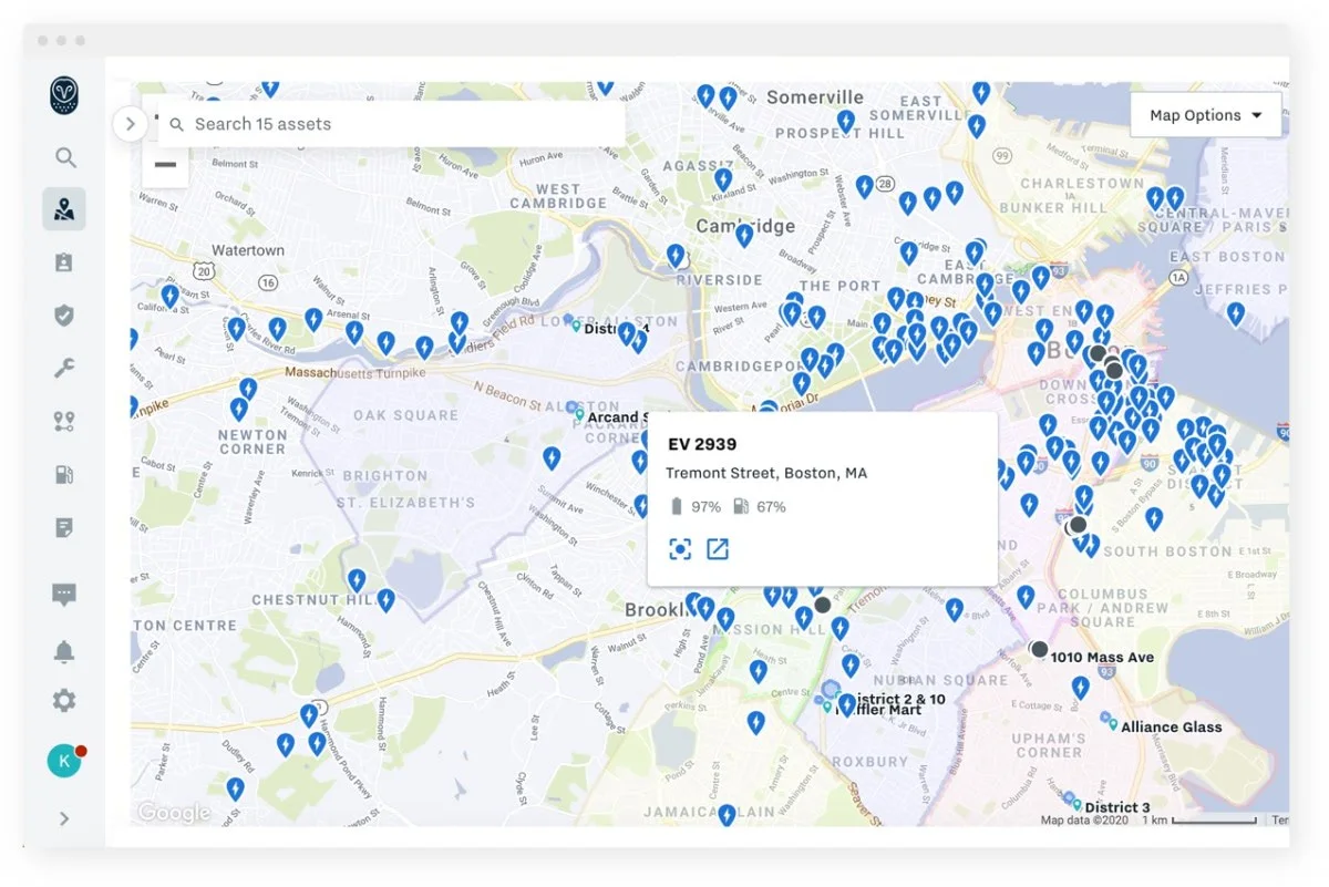 Optimize your EV fleet with map overlays and real-time visibility into fuel and energy levels and nearby charging stations. Ensure that dispatched vehicles have enough battery charge to get the job done.