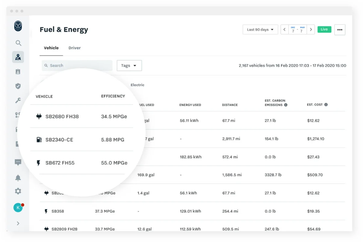 Dig into your fleet performance. Whether you have fuel vehicles, electric vehicles, or plug-in hybrids— ensure that your fleet’s vehicles are being used effectively and meeting your carbon emission goals.