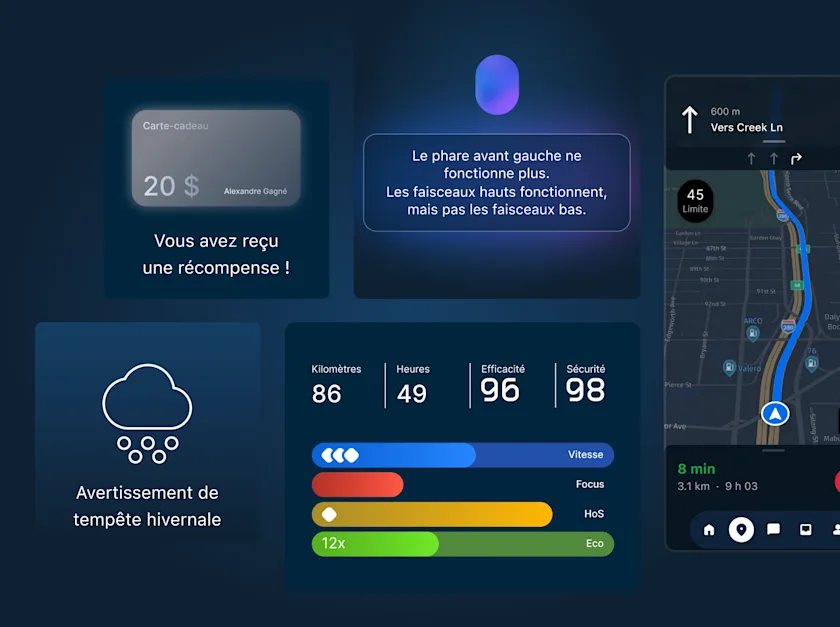 En relevant les plus grands défis du secteur, Samsara aide les organisations de transport à rester sécuritaires, efficaces et prêtes pour l'avenir. Les flottes utilisent la technologie Samsara pour :