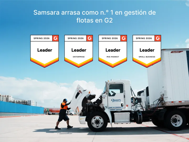 Análisis de gestión de flotas: Samsara ocupa el primer puesto en las categorías Overall, Enterprise, Mid-Market y Small-Business (SMB) Grid® (general, empresarial, mercado medio, y pequeñas y medianas empresas (PYMES)) sobre gestión de flotas.