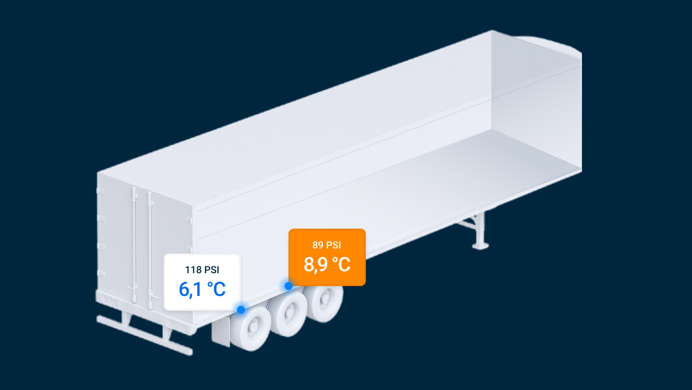 Slimme sensoren, geïnstalleerd op trailers, die inbreuken op de beveiliging en veranderingen in de omgevingsomstandigheden kunnen detecteren. Ze kunnen ook belangrijke voertuigindicatoren verstrekken, zoals de bandenspanning en de conditie van de remblokken.