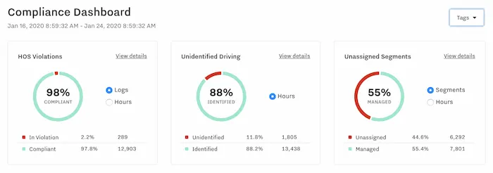Je kunt de locatie van getagde voertuigen delen, de voertuigen volgen op hun route en dispatchers de gelegenheid geven de aankomsttijd (ETA) beter in te schatten en bij te houden welke bestuurders gebruikmaken van de van rij- en rusttijdenversoepeling.