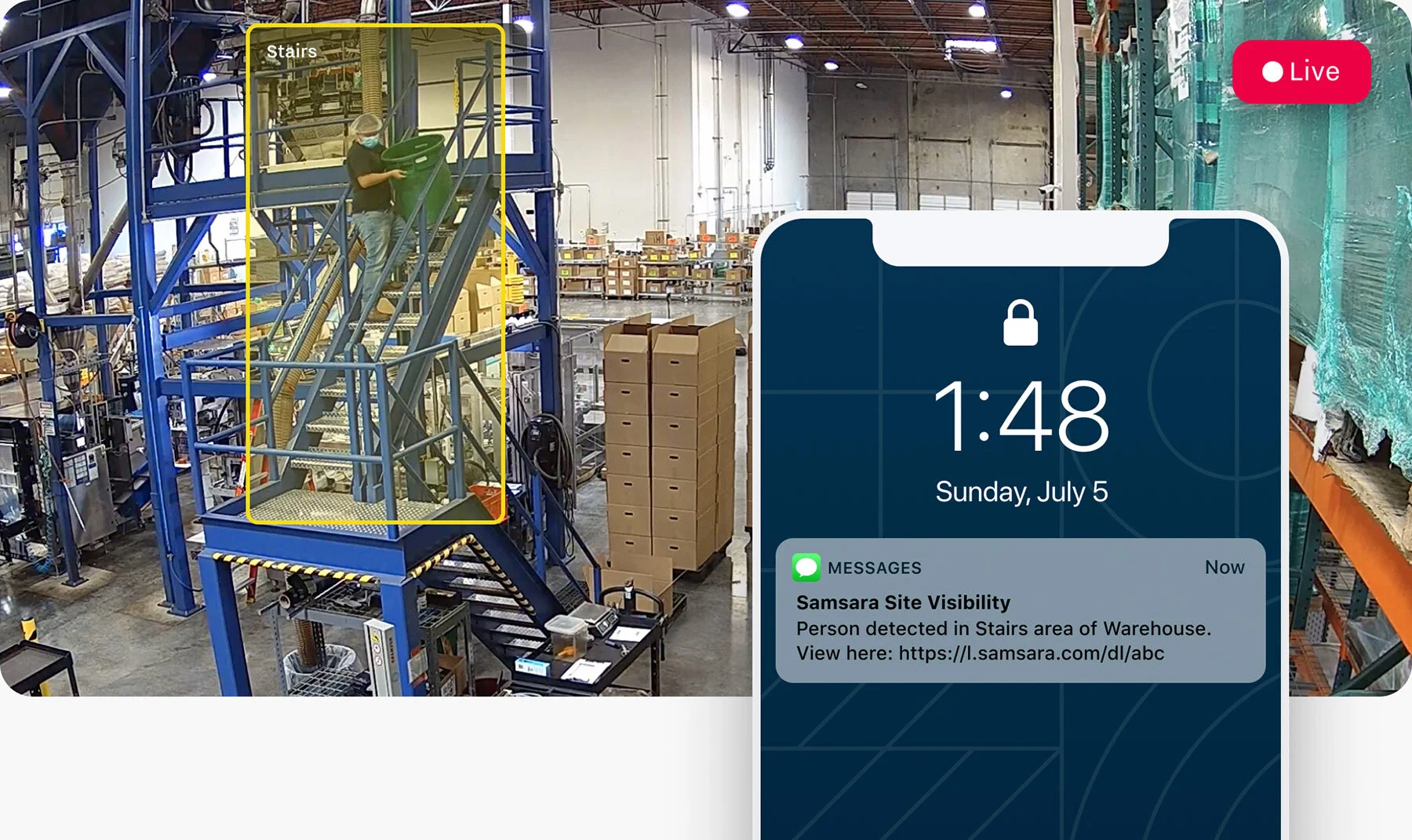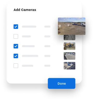 Samsara Site Visibility integrates with existing security cameras for easy installation. Plug in the Site Gateway to your network and set up the cloud VMS in under 10 minutes. In a few clicks, detect and add existing IP camera streams into the Samsara Dashboard. Use these streams to create custom views, share footage, and gain on-the-go visibility from your phone.