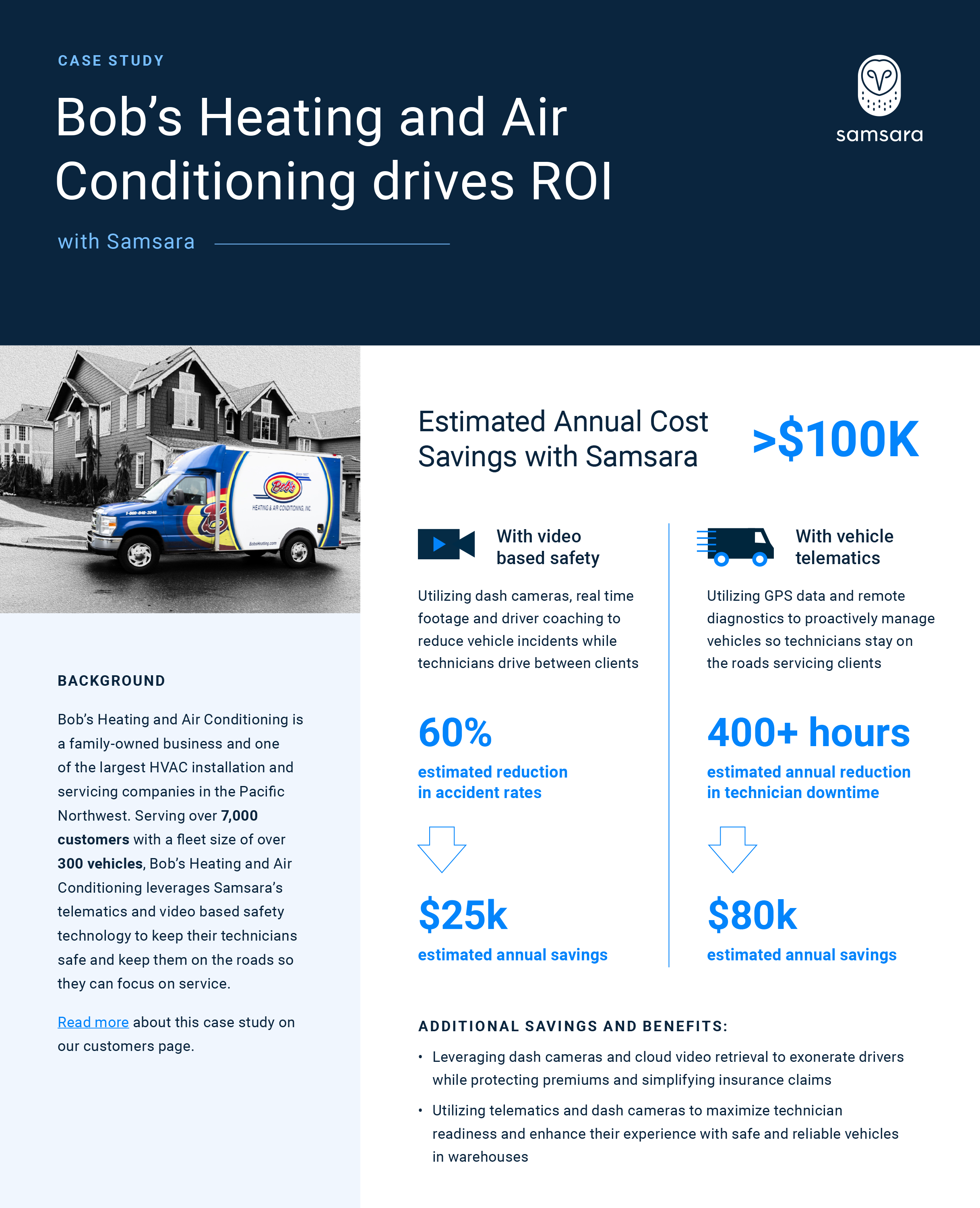 Learn how Bob's Heating and Air Conditioning uses Samsara's video-based safety and vehicle telematics to reduce costs while keeping their technicians safe on the roads.