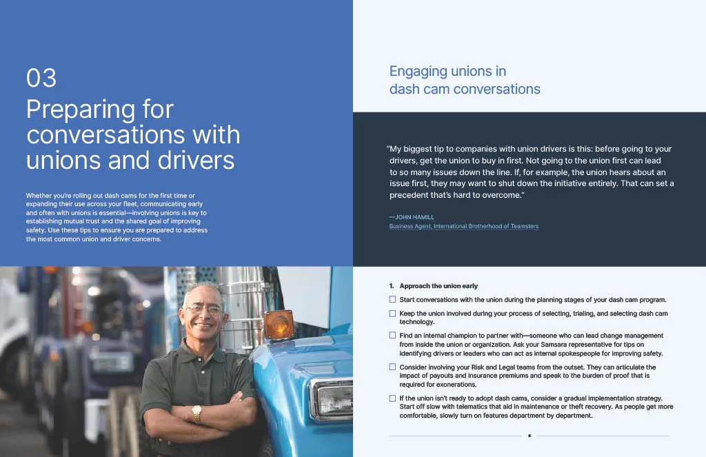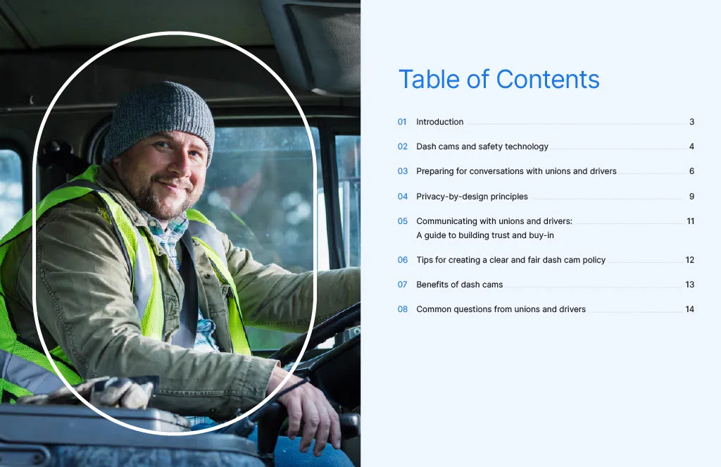 If you're ready to transform your fleet's safety and efficiency alongside unions, this ebook will empower you to make impactful improvements no matter where you're starting from. Download now to get your comprehensive guide to navigating dash cams in partnership with unions.
