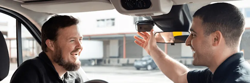 Dual-facing AI dash cams help you keep an eye on drivers’ safety and ensure that they aren’t fatigued or distracted. Dash cams have built-in speakers for in-cab alerts for speeding, harsh events, and unbuckled seat belts.